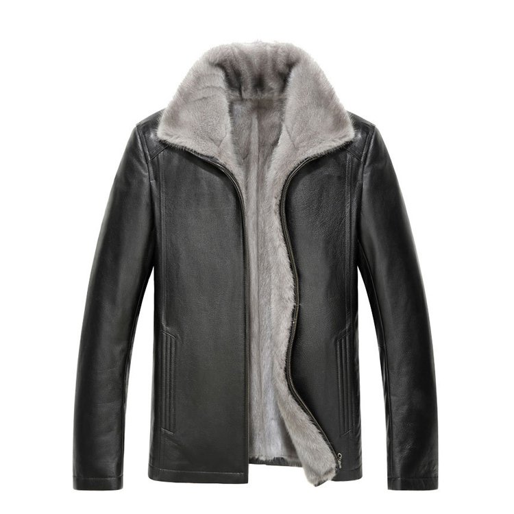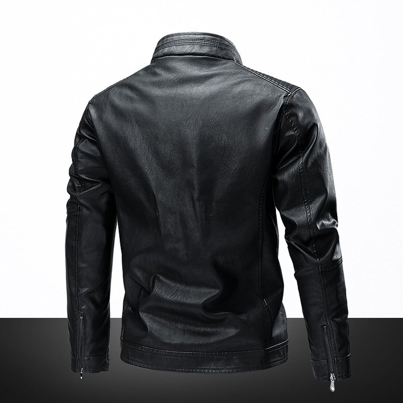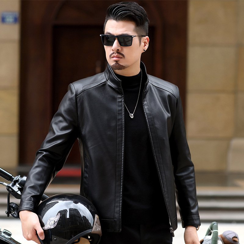 Ανδρικό δερμάτινο μπουφάν με υψηλό κολάρο και δημοφιλές στυλ.